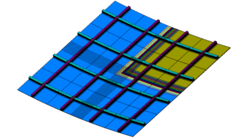 Development of high computational efficiency in the analysis of large-scale composite structures featuring localized discontinuities, such as reinforcements, cut-outs, laminate transitions, and bonded joints. Regular regions are modeled using conventional beam or shell elements, while zones with irregularities are treated with detailed solid or plane-stress formulations. To bridge these domains, it develops robust interface strategies enabling weak coupling between model types, with particular focus on laminar interfaces with variable stiffness, a hallmark of composite materials. These hybrid modeling approaches also provide the foundation for constructing of superelements using Reduced Order Models (ROMs), whereby detailed representations of irregular zones are numerically characterized and condensed into efficient tailored novel finite element formulations. The ultimate objective is to ensure seamless integration with standard beam and shell models commonly used in industry, facilitating accurate and efficient simulation of complex composite assemblies.
