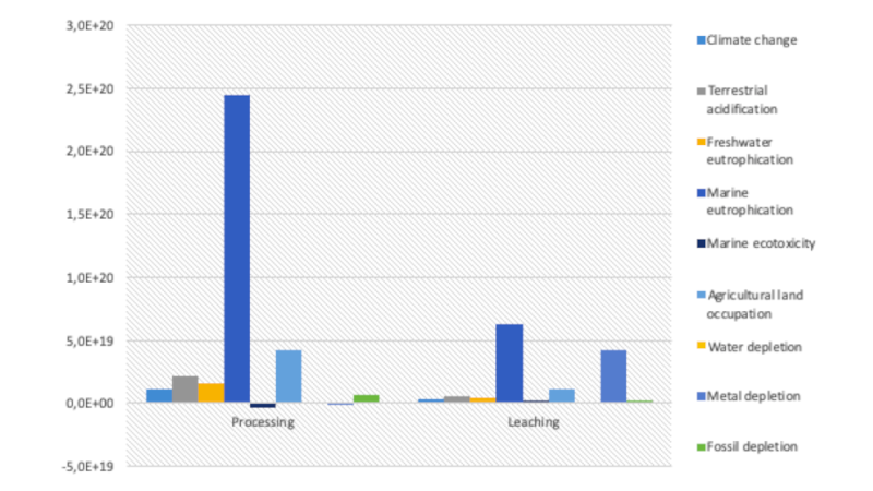 Using the life cycle assessment (LCA) software SimaPro, an assessment focused on large scale gold mining by heap leaching has been made, identifying that the processes that have the worst effects on the environment resulted to be processing, mainly, and leaching in second place. Moreover, the most affected impact categories were: climate change, agricultural land occupation, water and metal depletion. On the other hand, another three different impact categories, terrestrial, freshwater and marine ecotoxicity, showed an inverse result which could be translated as a potential positive impact, however due to the inventory and data collected, the affirmation cannot be possible to sustain. (PI: Alfonso Rodríguez-Dono)