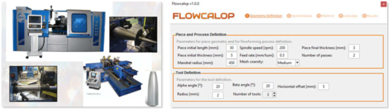 Metal-forming processes analysis: industrial equipment (left) and GUI for process parametrization (right)