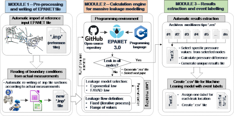 Methodological scheme of advanced numerical utility to simulate massive cases of leakage scenarios in WDNs