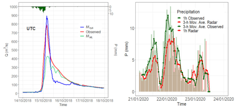 Methodologies for combining outputs from 2D numerical models (based on IBER software) with ML-based models considering rainfall and past streamflow values to obtain accurate and fast 3-hour ahead predictions of streamflow in flood events.
