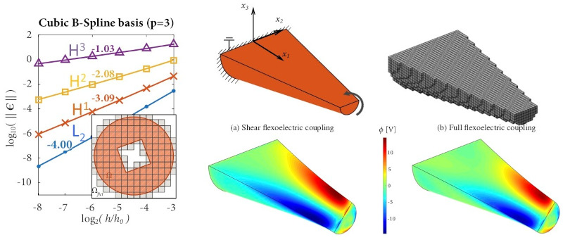 Development of advanced discretization methods, including immersed B-splines and C0 penalty, for the efficient solution of the 4th-order PDE system arising in flexoelectricity in general geometries, material and electrode configurations.