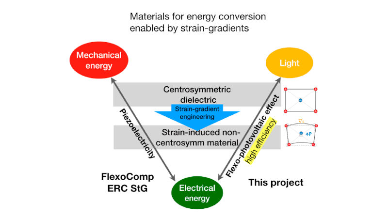 Development of a theoretical and computational framework for the simulation of flexo-photovoltaics aiming at the design and optimization of a new family of solar-cells.