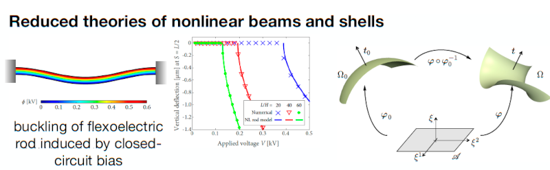 Development of reduced theories for non-linear flexoelectric beams and non-linear shells to gain understanding of the physics and aid the design of new devices.