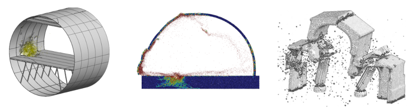 The Structural Mechanics Group develops innovative numerical methods combining finite elements with particle-based techniques to analyze structures made of traditional and advanced materials, addressing multi-physics challenges across civil, aerospace, and transportation applications.